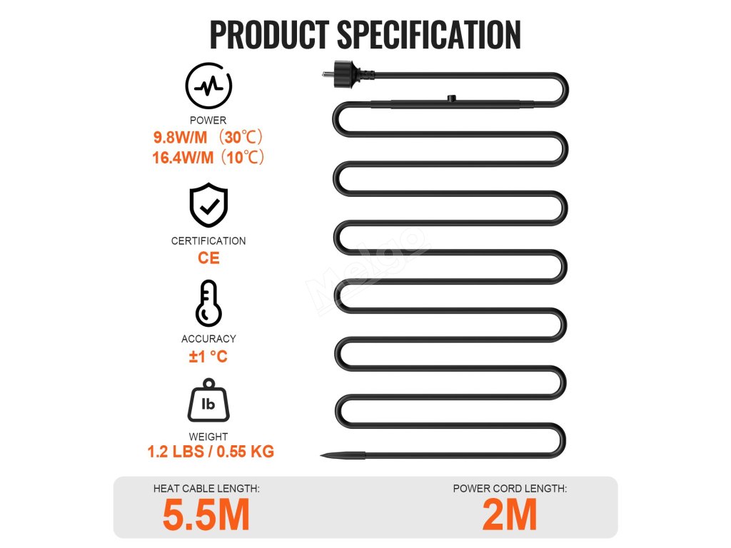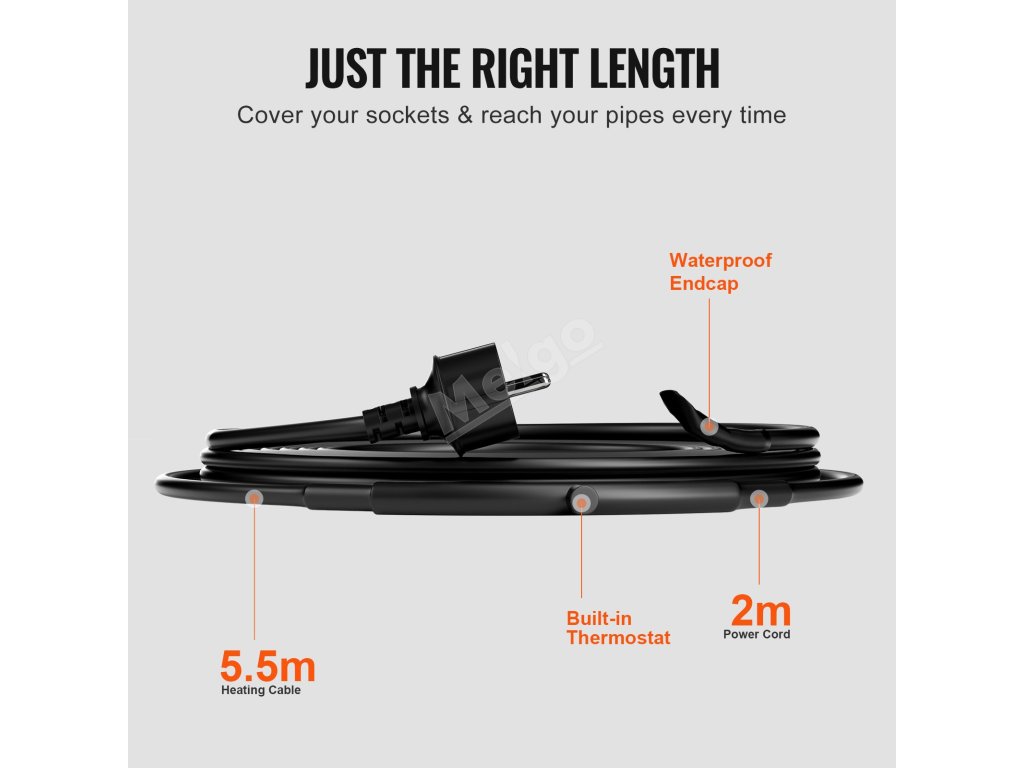 Ať už stavíte karavan v mrazivém podnebí, nebo chcete zajistit plynulý průtok vody v domě či na zahradě, náš 5,5m ohřívací kabel pro vodovodní potrubí o výkonu 16,4 W/m se samoregulační technologií a vestavěným termostatem je ideální volbou. Inteligentní ochrana proti zamrznutí pro klid duše.