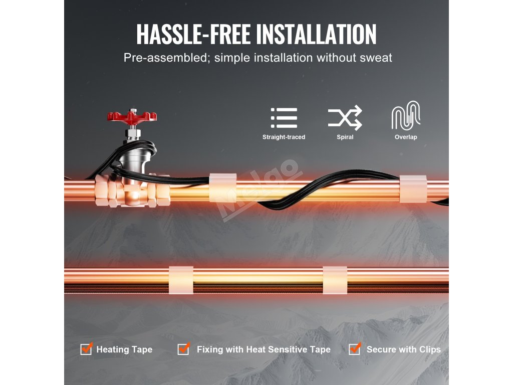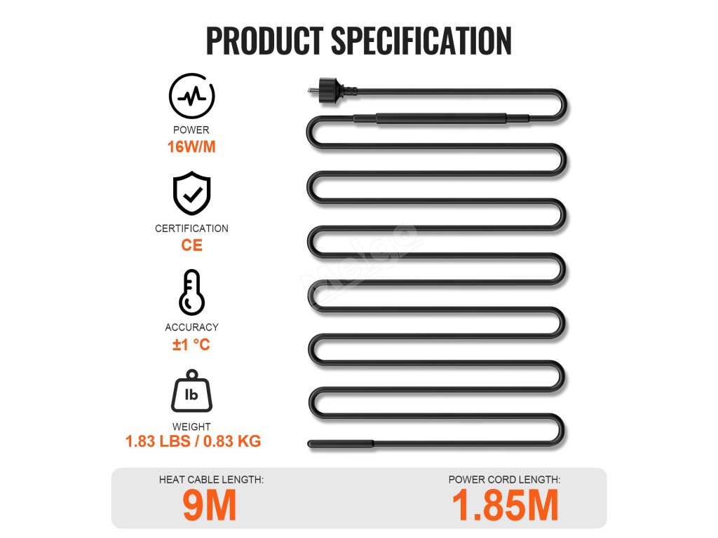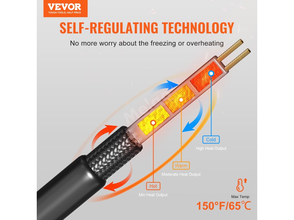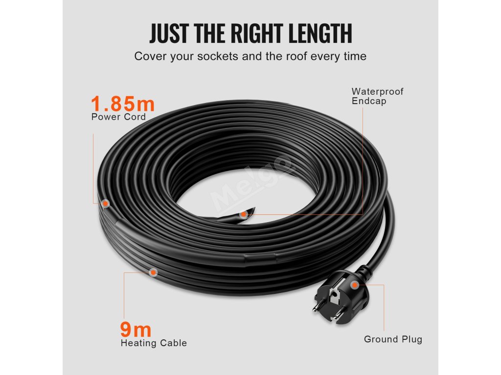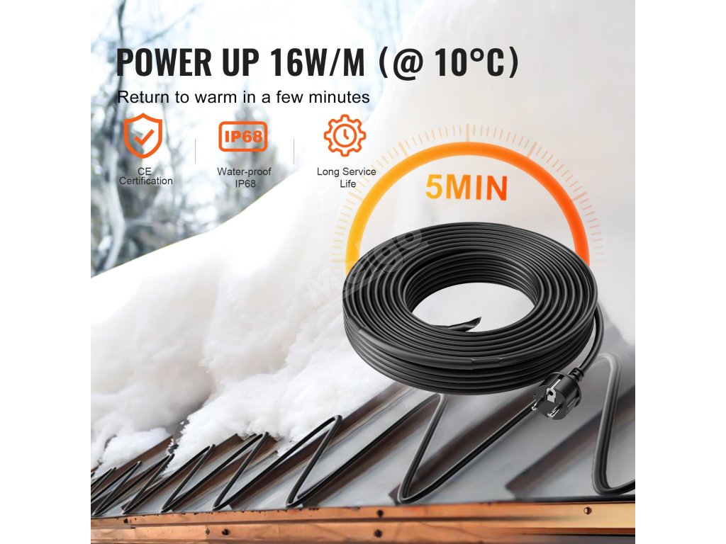 Pokud se obáváte destruktivních ledových zácp na střeše nebo chcete v zimě udržet vodu v proudu - náš elektrický ohřívač vody je to, co potřebujete! Střešní topný kabel VEVOR 9 m 16 W/m se samoregulační technologií dokáže automaticky upravovat svou teplotu v závislosti na prostředí.