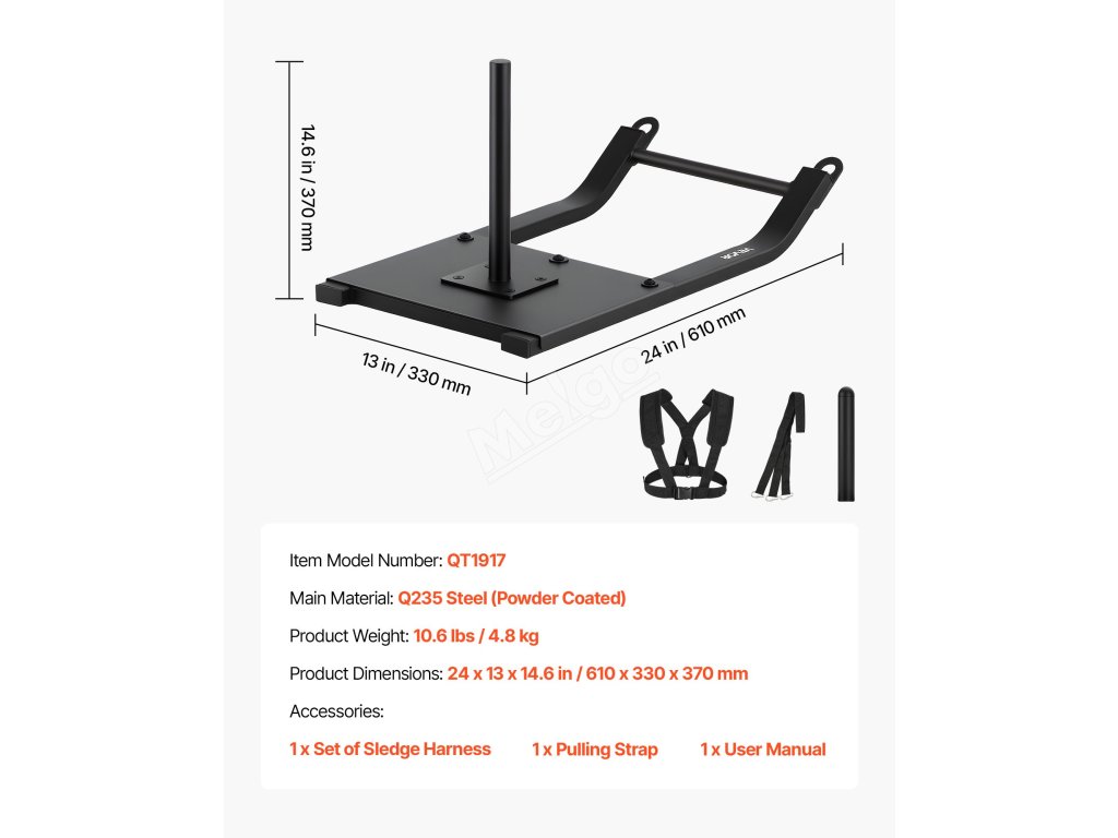 Sáňky na tahání, ocelové na trénink, pro kotouče 25/51 mm, s postrojem