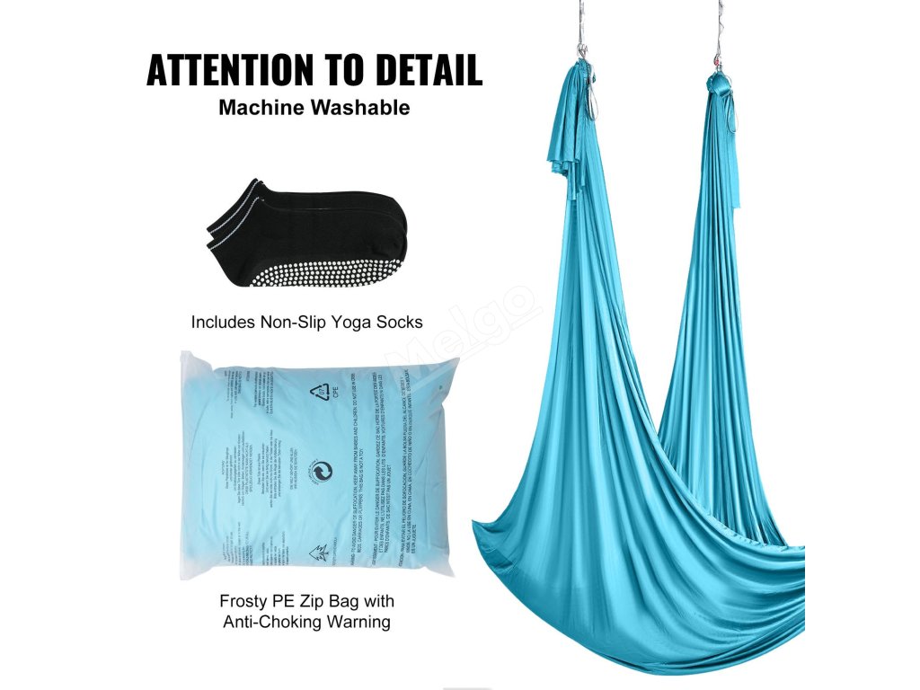 Postarali jsme se o každý detail, abychom vylepšili váš zážitek. Naše speciálně navržené protiskluzové ponožky na jógu zlepšují stabilitu. Navíc se naše houpací síť na jógu snadno čistí, lze ji prát v pračce a dodává se s bezpečným matným PE pouzdrem na zip pro pohodlné skladování.