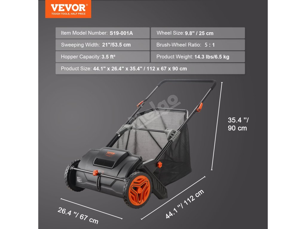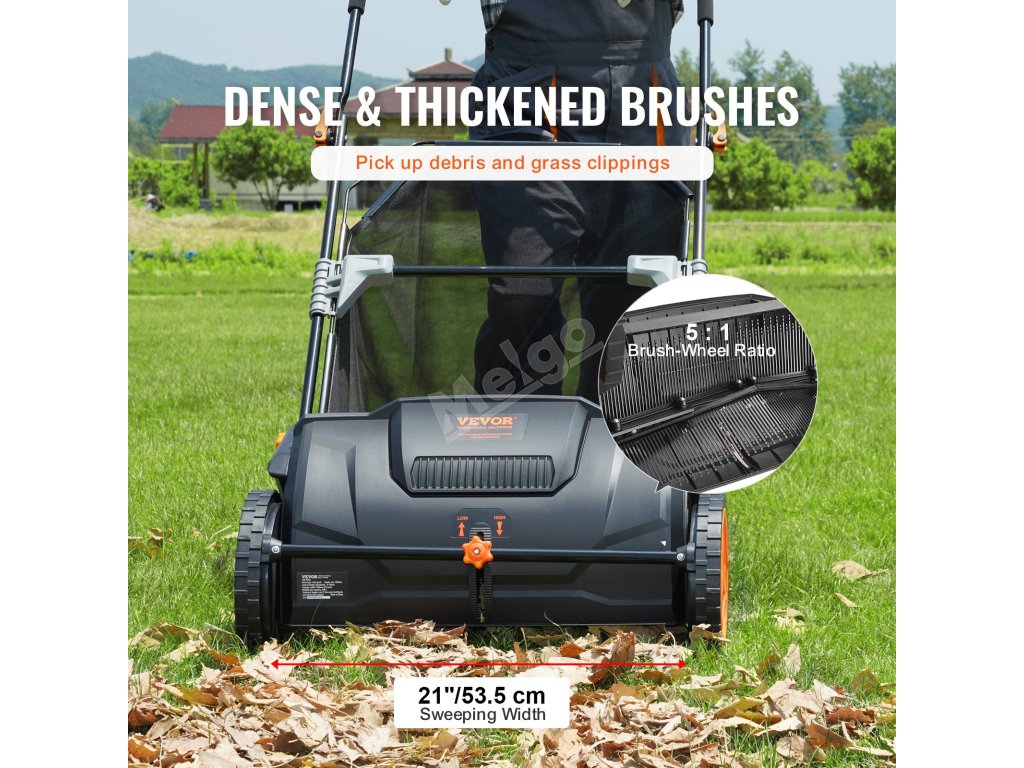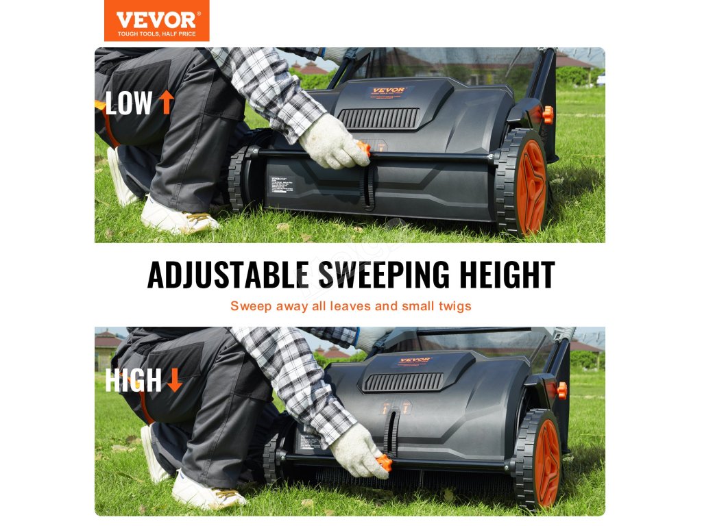 Náš zametací stroj je navržen tak, aby účinně vyčistil váš trávník, zahradu nebo příjezdovou cestu. Díky nastavitelnému knoflíku na přední straně můžete snadno nastavit výšku a zaměřit se na listí, plevel, jehličí a další. Rozlučte se s pracným a únavným zametáním a pozdravte čistý a zelený trávník!