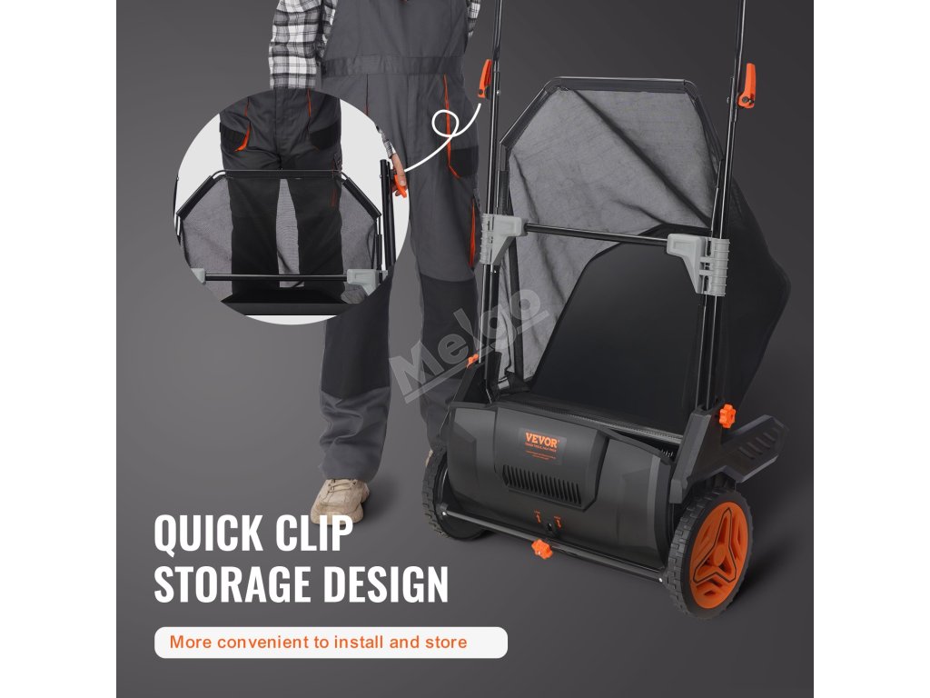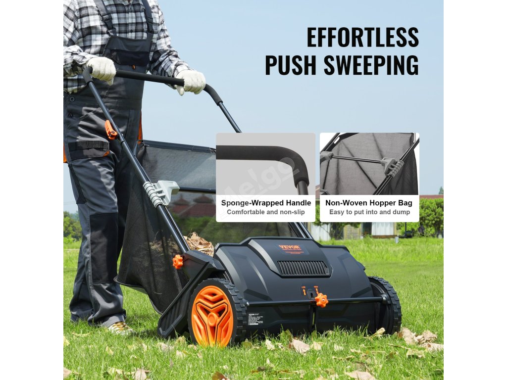 Tento ruční tlačný zametač trávníku dokáže sbírat listí, drobné větvičky, plevel a další nečistoty. Jednoduše uchopte rukojeť a zatlačte zezadu, abyste snadno uklidili veškerý nepořádek před sebou, což vám urychlí a usnadní práci na zahradě.