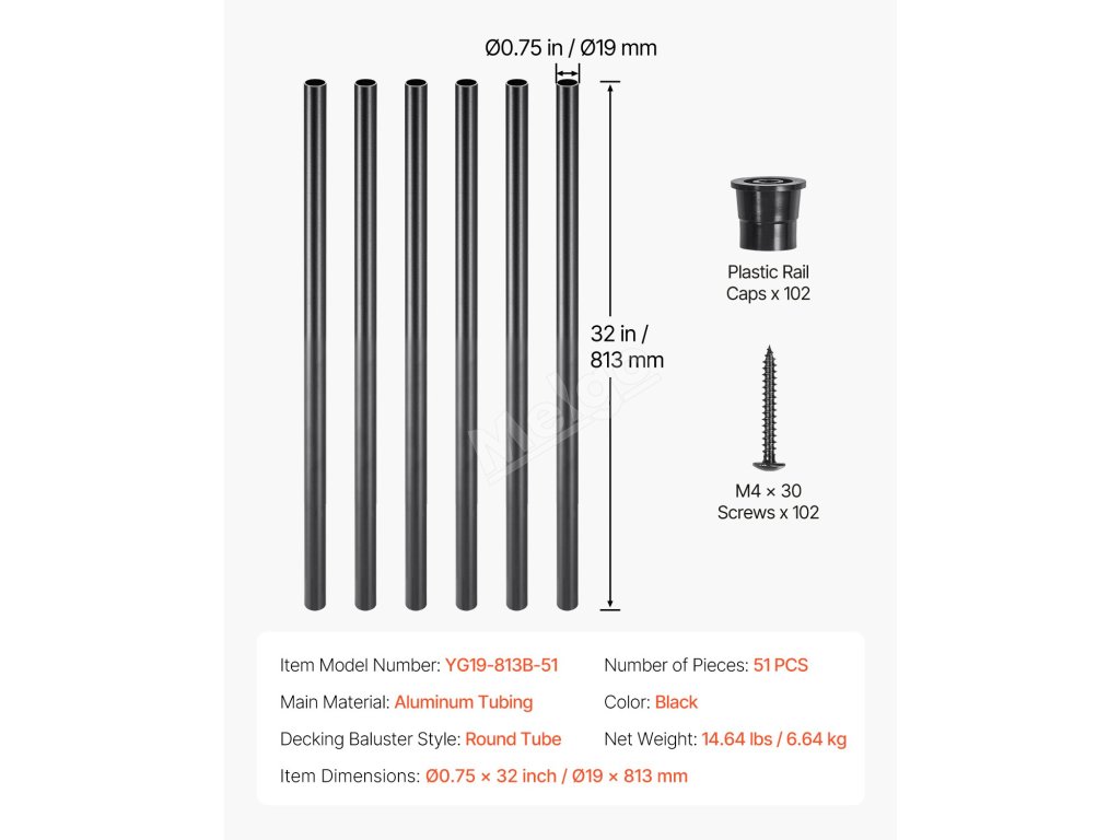 Schodišťové balustre 51 ks, 32 in hliníkové, 3/4 in, matná černá