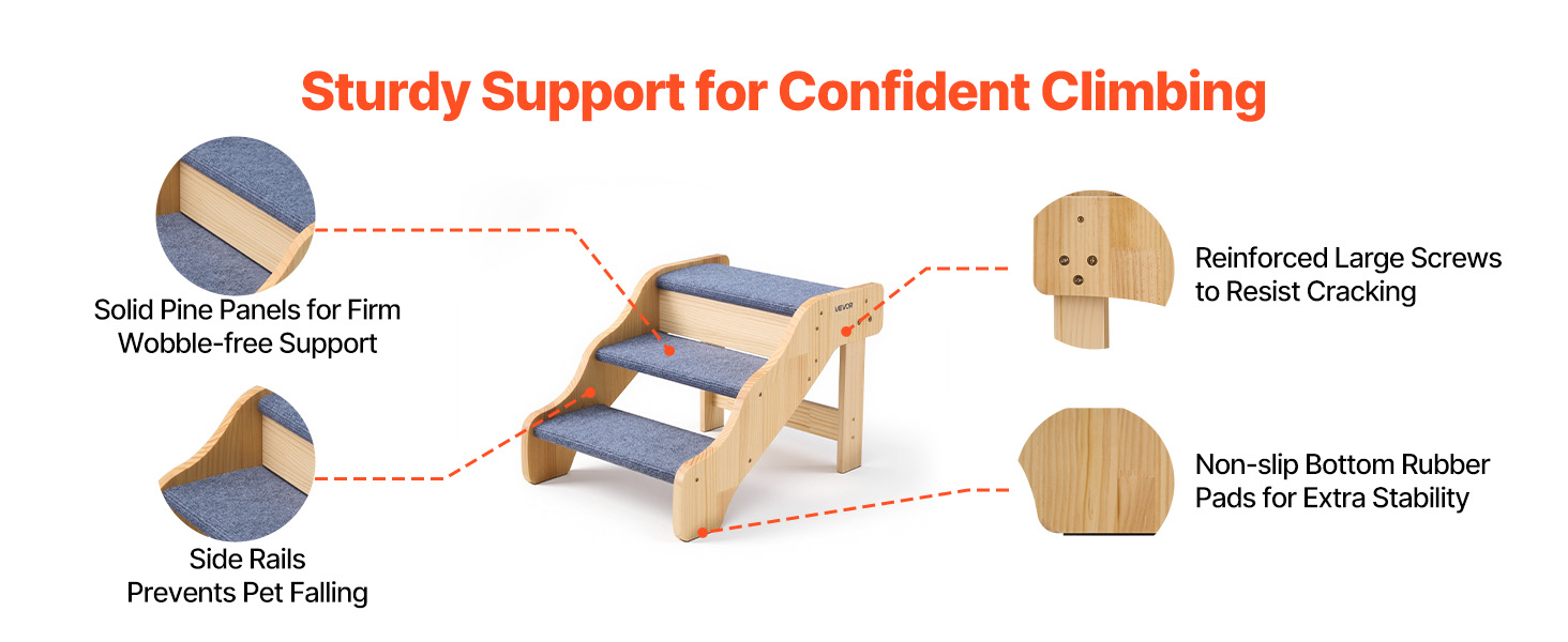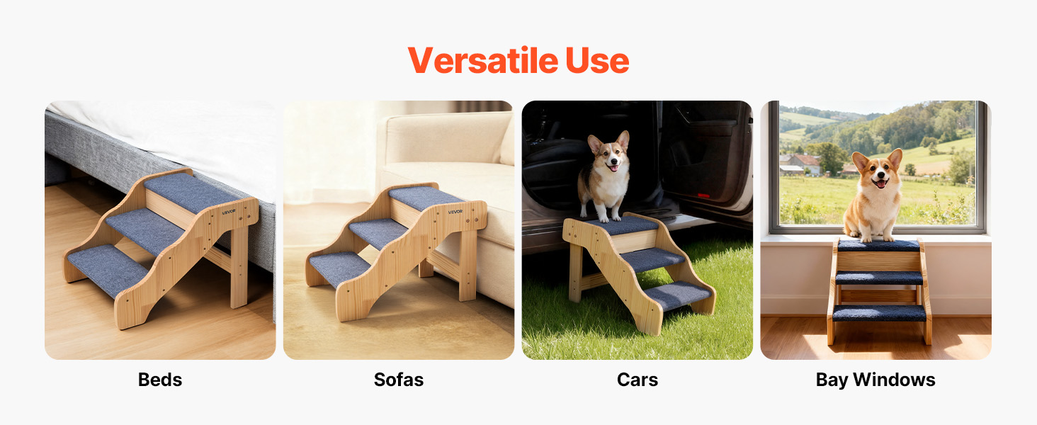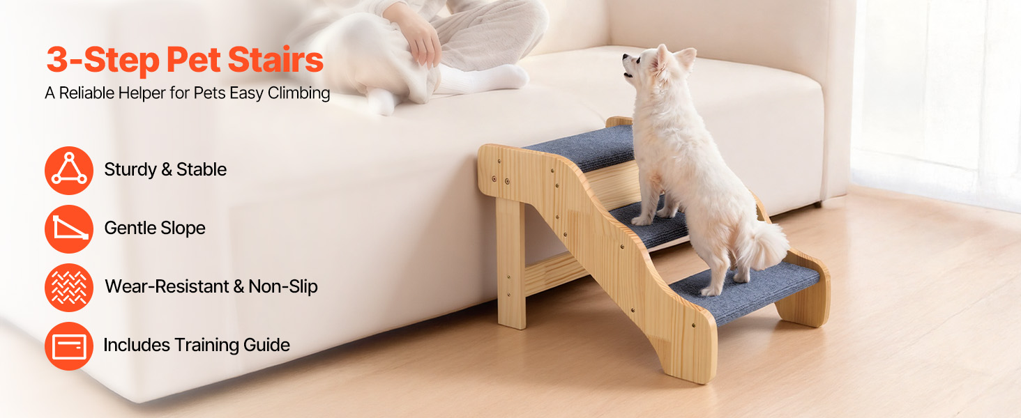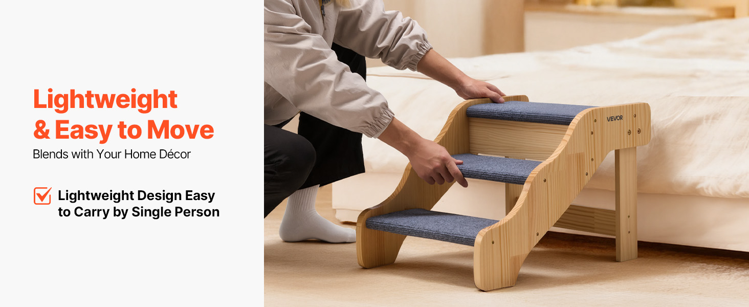třípatrová konstrukce pomáhá domácím mazlíčkům všech velikostí, zejména starším, zraněným nebo pohybově postiženým, bezpečně se dostat na postele a pohovky. Robustní konstrukce poskytuje oporu, zatímco lehká konstrukce usnadňuje přemisťování. Jeho čistý, jednoduchý design se dokonale hodí do každého interiéru.