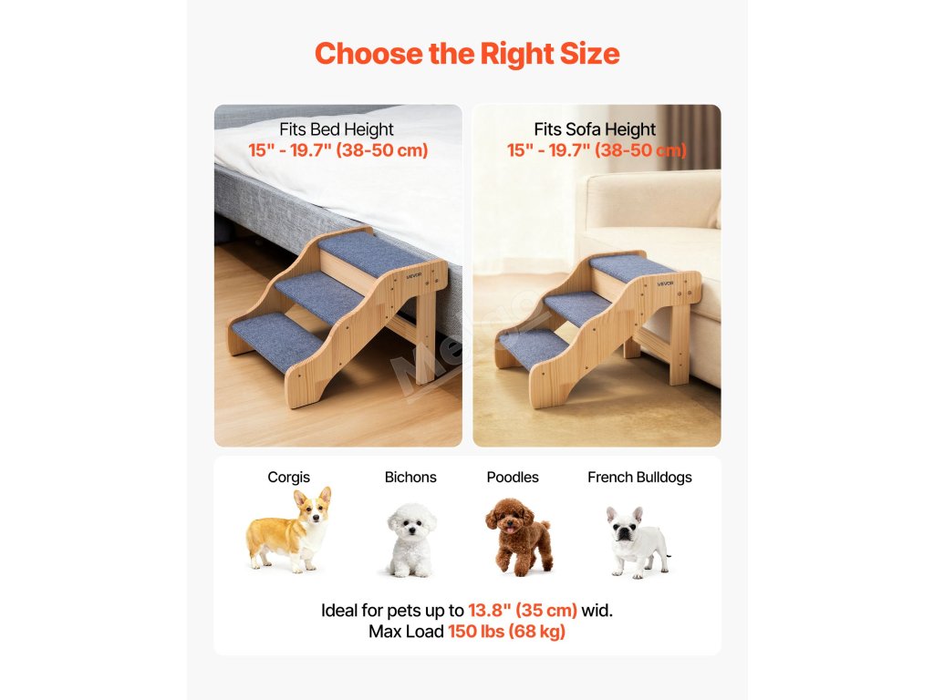 Naše schody pro psy jsou ideální pro malé až středně velké psy, starší domácí mazlíčky nebo zraněné mazlíčky, kteří potřebují pomoc při lezení na vyšší nábytek.