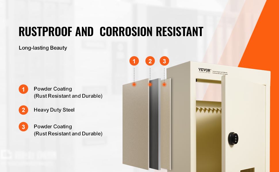 Naše skříňka na klíče je vyrobena z odolné oceli a opatřena práškovým nátěrem pro dodatečnou ochranu proti korozi, což zajišťuje dlouhou životnost a odolnost proti korozi. Povrchová úprava práškovým lakem zvyšuje její odolnost a zachovává si atraktivní vzhled i po dlouhé době.