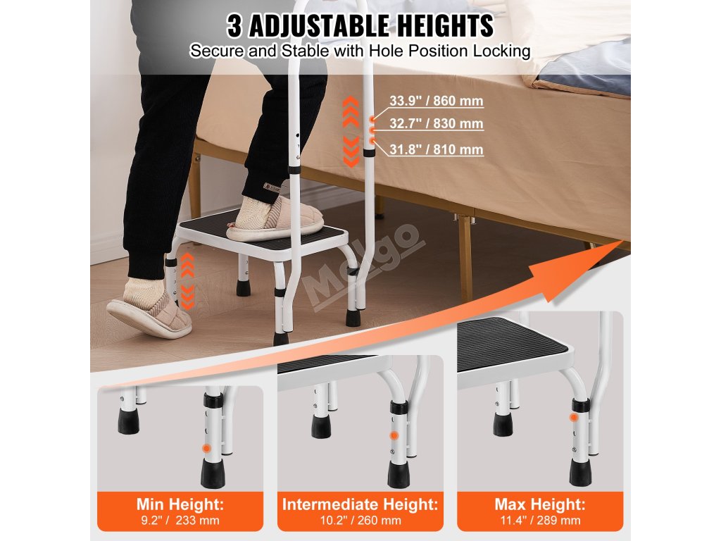 Schůdek 1-stupňový nosnost 150KG, 3 nastavitelné výšky, s rukojetí