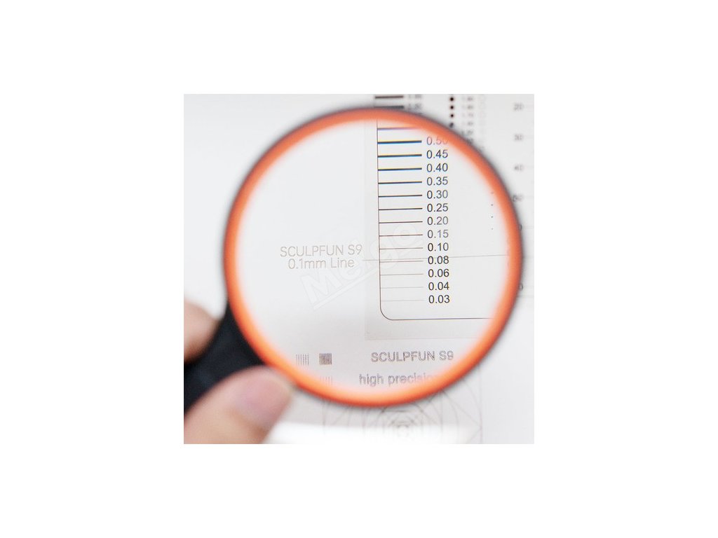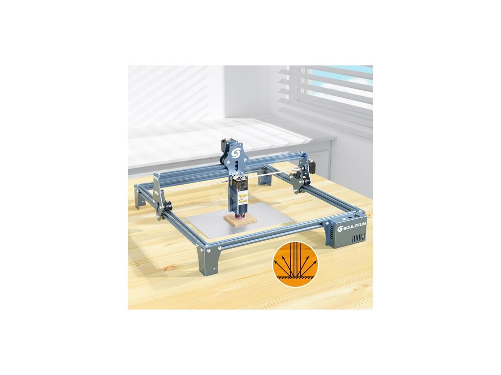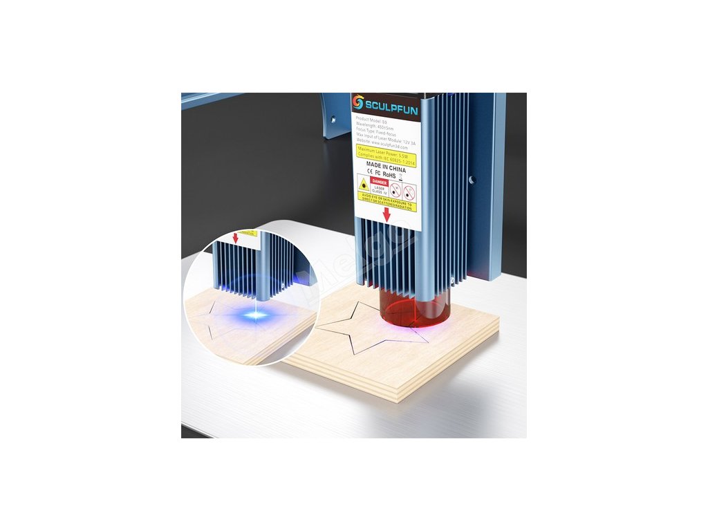 Laserová gravírka S9 využívá nejnovější technologii tvarování laserového paprsku pomocí 5,5W diodového laseru, který má velmi jemné zaostření 0,06 mm. Díky super průniku a přesnosti řezání dokáže řezat až 15 mm silné dřevo, 10 mm akrylát, vyřezávat keramiku a nerezovou ocel, což téměř převyšuje účinek 90W CO2 laseru.