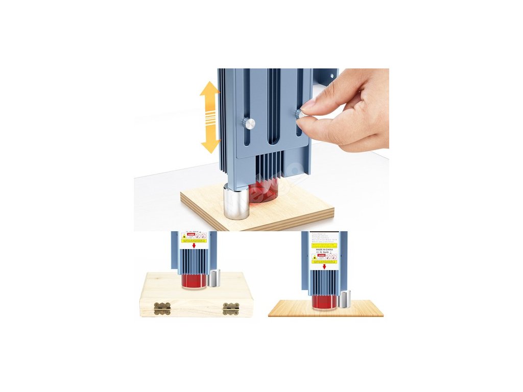 laserový gravírovací stroj S9 má nejrychlejší zaostřování a posuvnou konstrukci, stačí jen posunout laser a utáhnout šroub pro dokončení rychlého zaostření laserového gravírovacího stroje. Osy X a Y obsahují přesné čáry stupnice, které jsou vhodné pro rychlé měření velikosti gravírovaných předmětů.