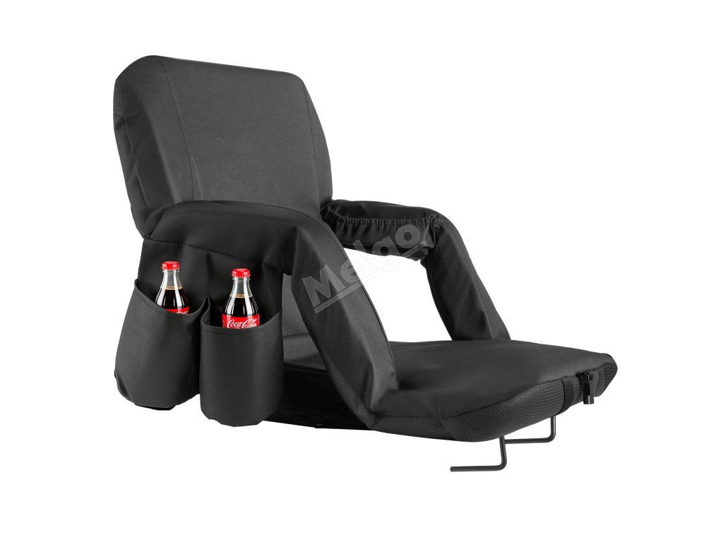 Díky dvěma výsuvným háčkům zespodu lze toto sedadlo na stadion s batohem připevnit na tribuny, lavičky nebo rovnou zem. Poskytuje stabilní a pohodlné sezení pro diváky na venkovních sportovních akcích nebo jiných shromážděních.