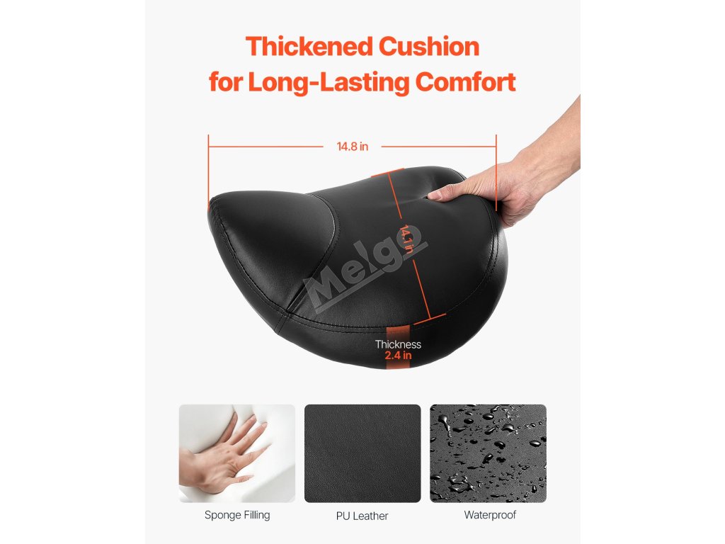 Naše pojízdná židle je vyrobena ze stlačené pěny s vysokou hustotou. Polštář má rozměry 14,8 x14,1 palce s tloušťkou 2,4 palce a kožený sedák je voděodolný a prodyšný, což poskytuje mimořádné pohodlí při dlouhém sezení.