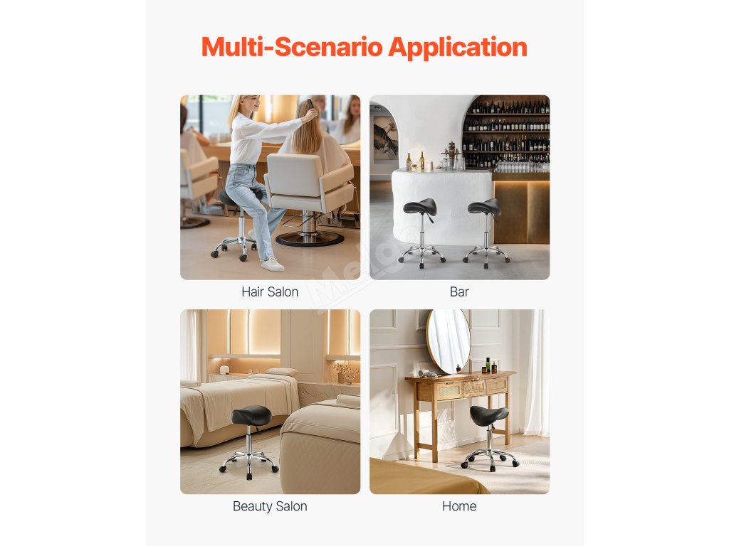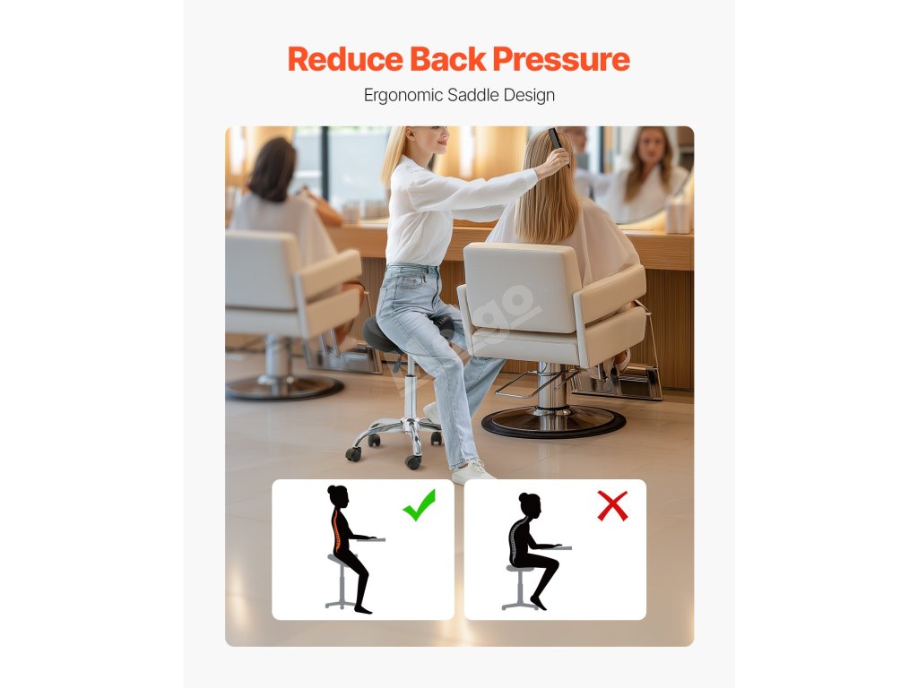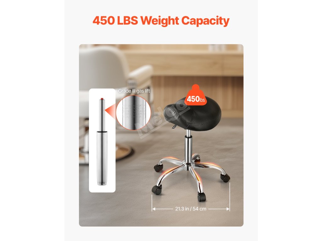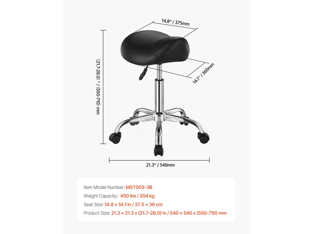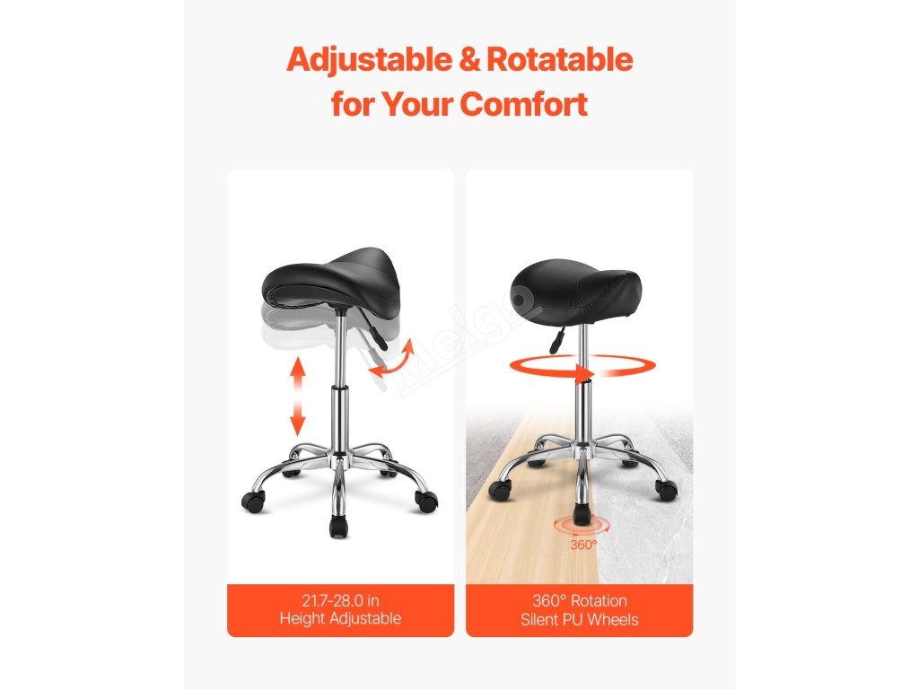 Toto sedlové křeslo má ergonomický design s vyztuženým polštářem pro větší pohodlí. Je vybaveno hydraulickým zdvihem s certifikací SGS, unese až 450 kg a nabízí nastavitelnou výšku a otáčení o 360°, takže je ideální pro kliniky, salony a laboratoře.