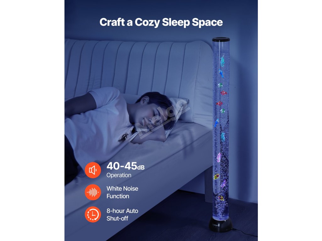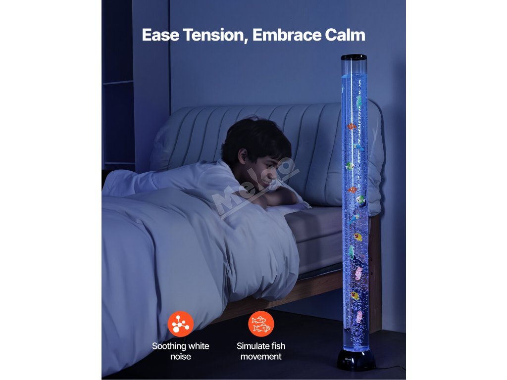 Naše smyslová bublinková lampa je ideální pro zmírnění každodenního stresu a pomáhá vytvořit klidnou, relaxační atmosféru, která zlepší vaši náladu.