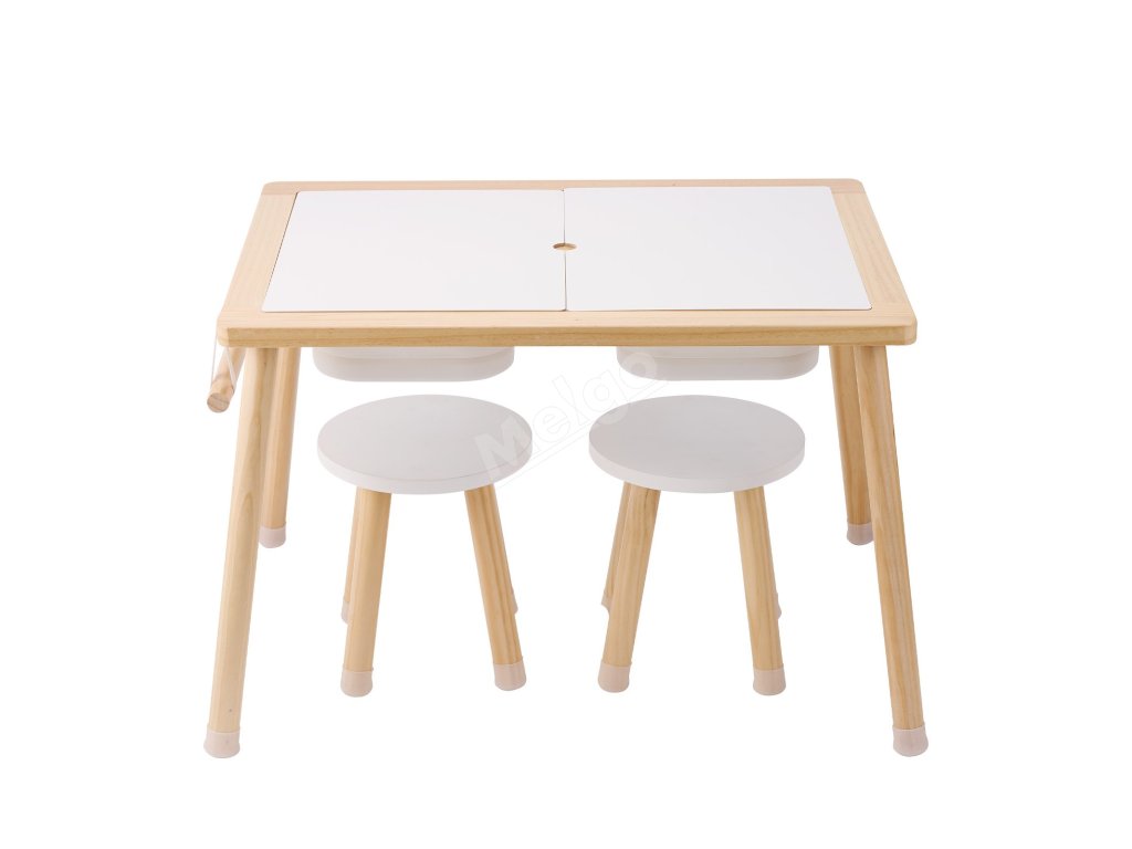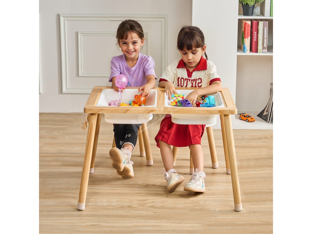 Senzorický stůl 2 židle, 2 boxy, držák papíru, dřevo, písek/voda