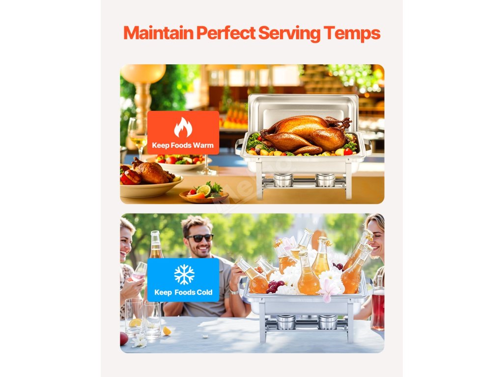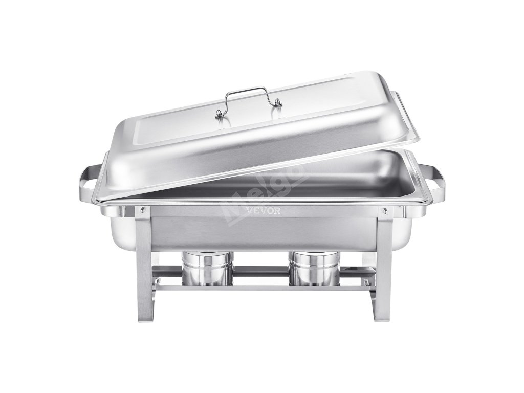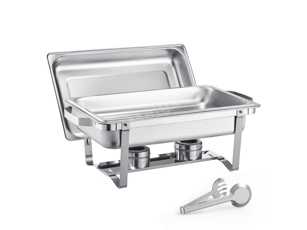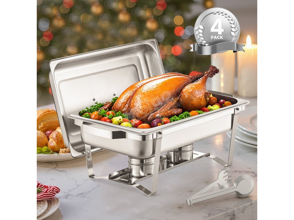 Servírovací ohrevný set nerez 8 qt, 4 plné nádoby, obdĺžnikový stojan