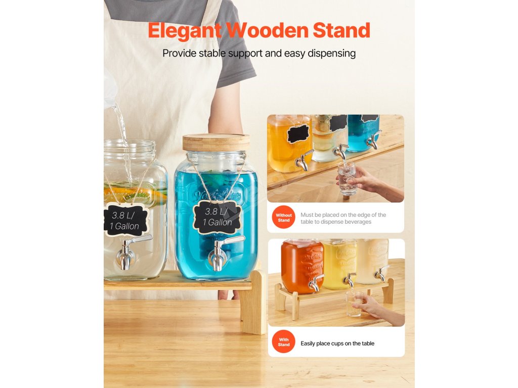 Priehľadný sklenený valec prehľadne zobrazuje hladinu nápoja, zatiaľ čo dizajn so širokým hrdlom uľahčuje dopĺňanie. Veko zabraňuje tvorbe prachu, stojan poskytuje stabilnú oporu a jednoduché dávkovanie a malé kriedové tabuľky sú ideálne na označovanie názvov nápojov.