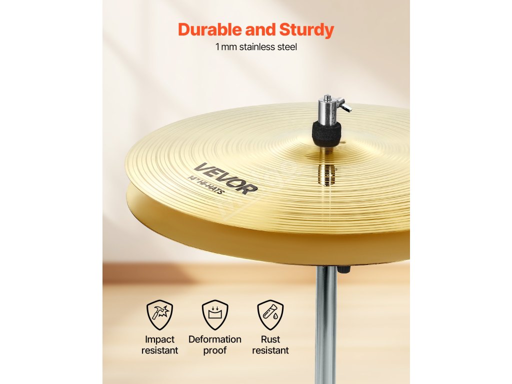 Naše činelová sada je vyrobena z odolné slitiny o tloušťce 1 mm, což zaručuje rychlou odezvu a pevnost. Drážky a kladívka zajišťují čistý a jasný tón, který vám poskytne hladký a příjemný zážitek ze hry.