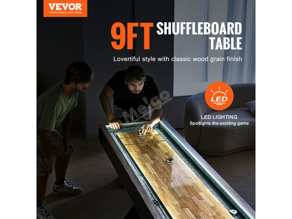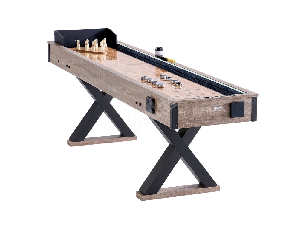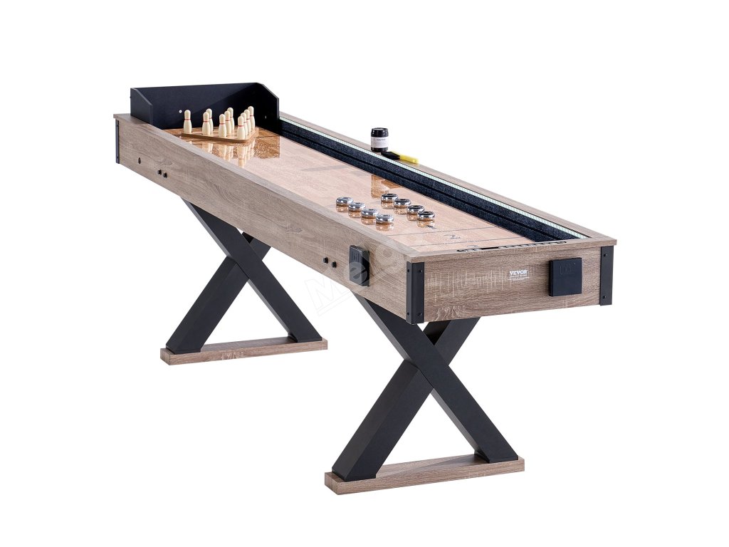 Shuffleboardový stůl 9 ft s led osvětlením, 2v1 bowling, 8 puků