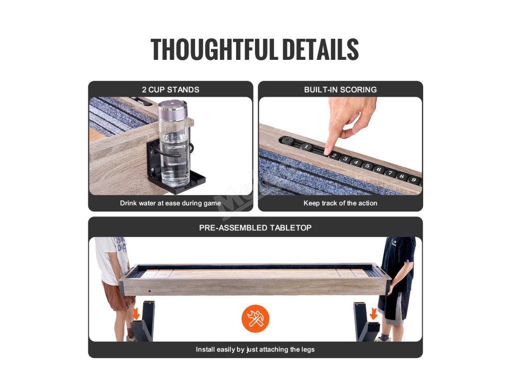 Maximalizujte svůj požitek z hraní s naším shuffleboardem 2 v 1, který kombinuje dvě hry v jedné. Zahrajte si klasickou hru shuffleboard nebo přejděte na poutavou hru bowling.