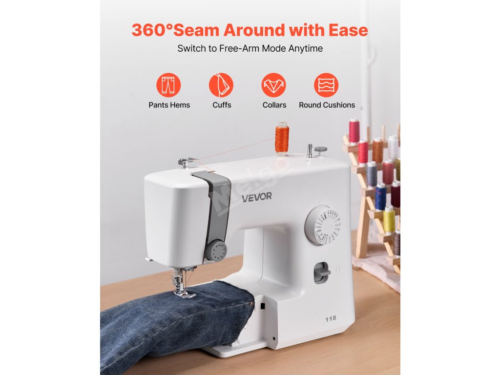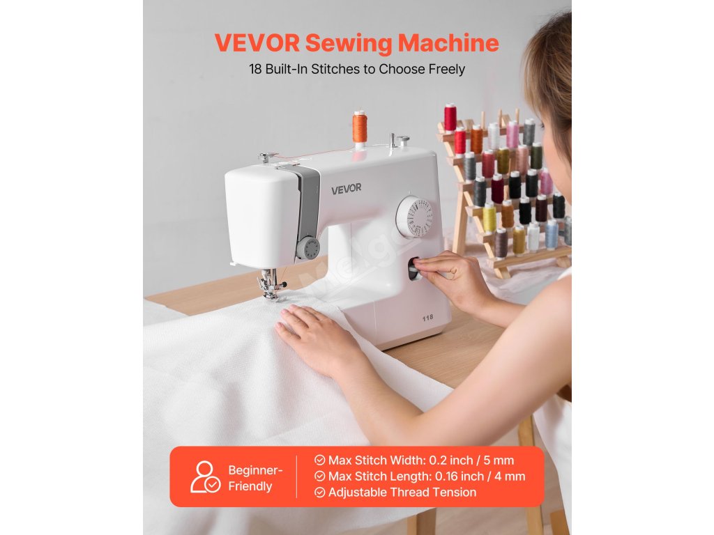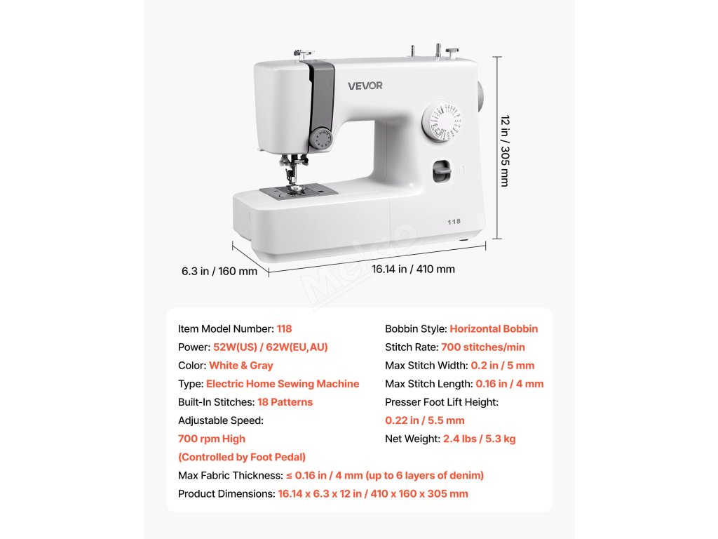 Šicí stroj s 18 stehy, led světlem, nožním pedálem, kovový rám