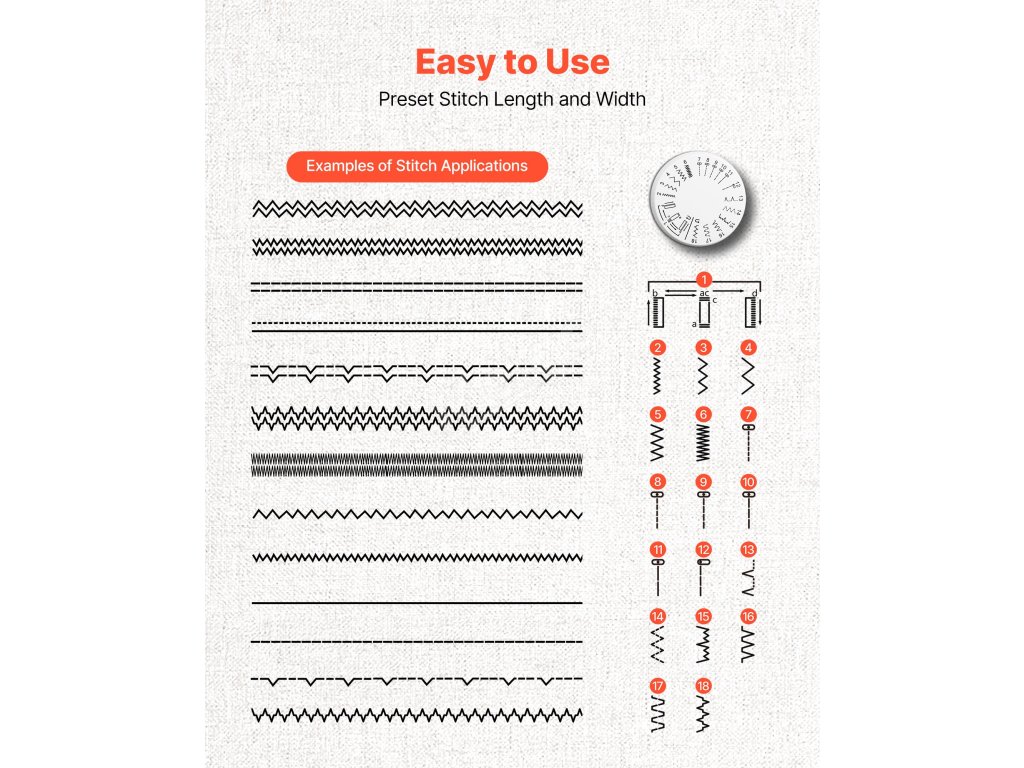 Tento elektrický šicí stroj kombinuje rovný steh, klikatý steh, knoflíkové dírky a další funkce v jednom kompaktním stroji. Vyberte si z 18 vestavěných stehů. Je také vybaven automatickým napínáním nitě, zpětným stehem jedním dotykem, účinnou knoflíkovou dírkou a automatickým navlékáním jehly, což zefektivní vaše šití.
