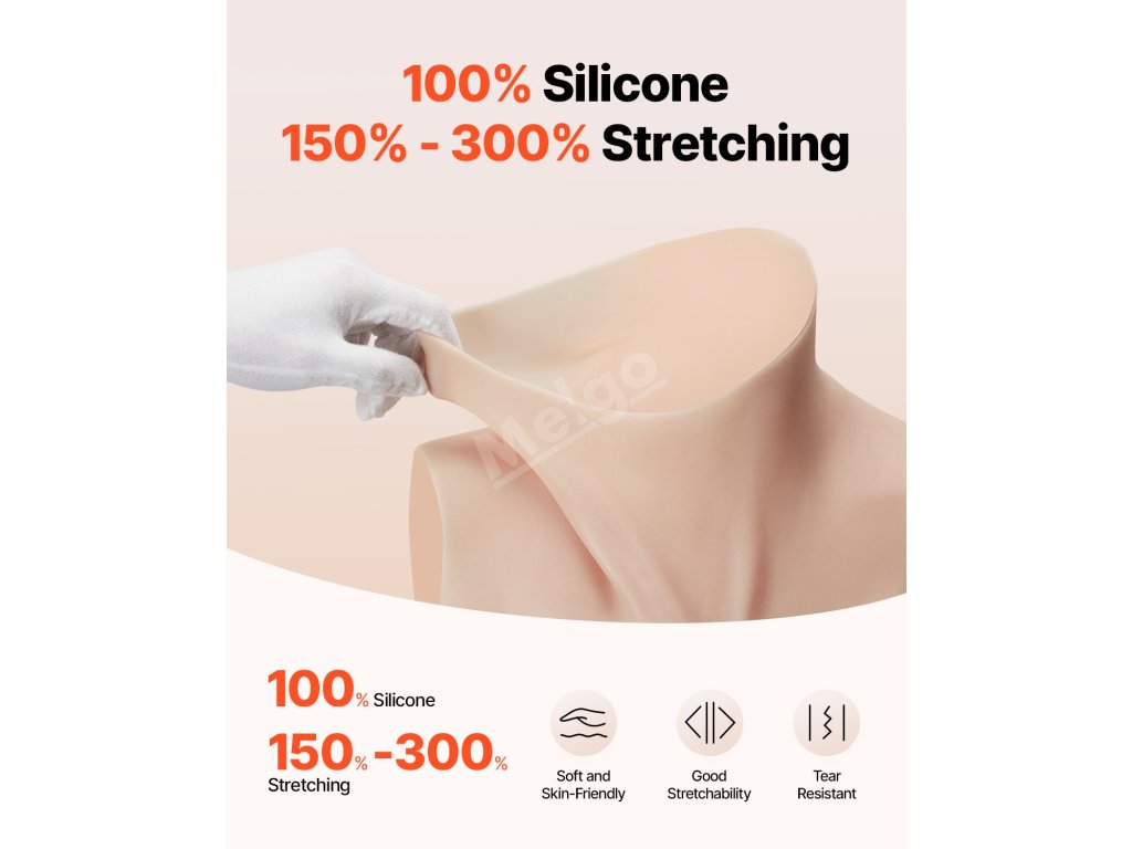 Tento prsný štítok zo 100 % silikónu je mäkký a príjemný na pokožku, čím poskytuje jedinečný zážitok z nosenia. Jeho vynikajúca elasticita umožňuje prsnému plátu prispôsobiť sa rôznym typom postavy, ponúka pohodlnejšie nosenie a predvádza prirodzený, realistický vzhľad.