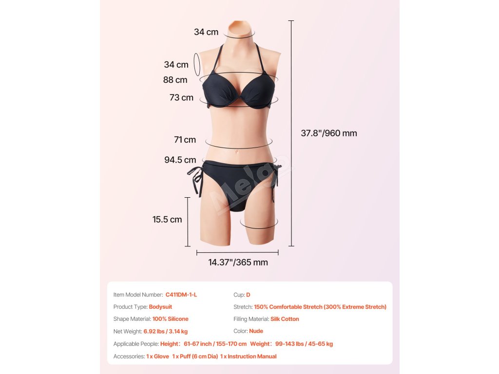 Naše silikónové body v sebe spája pohodlie a realizmus. Vyrobené zo 100 % silikónu a vyplnené hodvábnou bavlnou ponúka mäkký, na dotyk príjemný pocit a vynikajúcu elasticitu, takže je ideálne pre nadšencov cosplay a drag queens. Zvýšte svoje sebavedomie a vzhľad s naším výnimočným body.