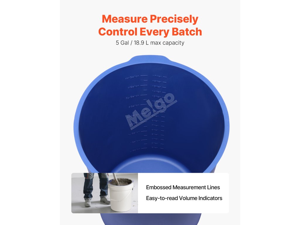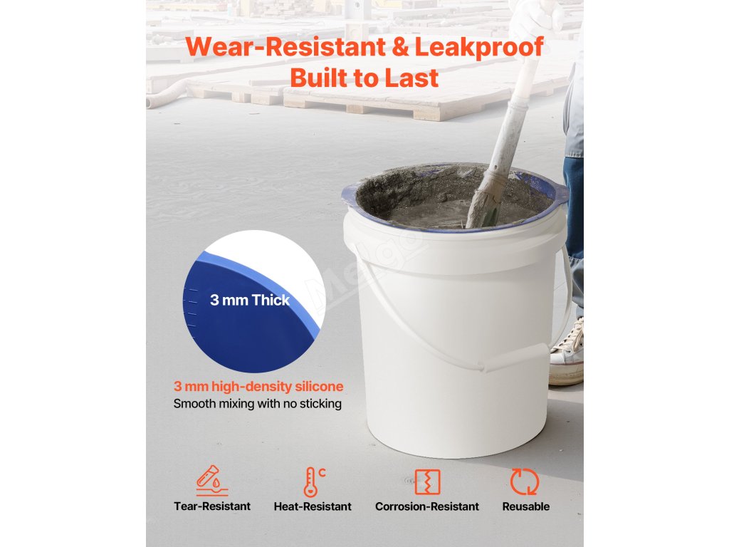 z 5galonového silikonového míchacího kbelíku se snadno odlupuje zaschlý materiál. Po vytvrzení se překlopí a vyprázdní pro maximální flexibilitu. Je vybaven vestavěnými držadly a zřetelnými odměrnými značkami. Ideální pro míchání ve stavebnictví v různých podmínkách.
