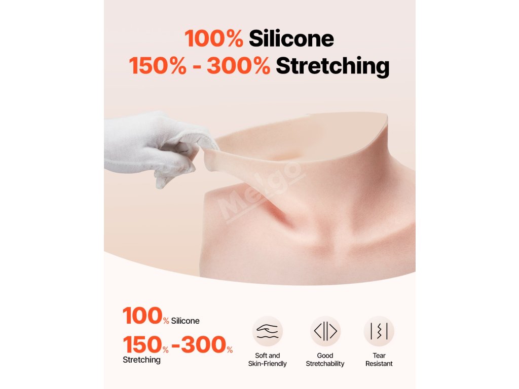 Tento prsný štítok zo 100 % silikónu je mäkký a príjemný na pokožku, čím poskytuje jedinečný zážitok z nosenia. Jeho vynikajúca elasticita umožňuje prsnému plátu prispôsobiť sa rôznym typom postavy, ponúka pohodlnejšie nosenie a predvádza prirodzený, realistický vzhľad.