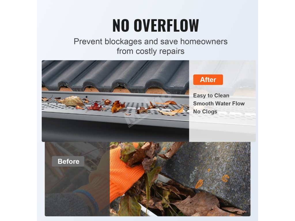 Jste připraveni dát sbohem ručnímu čištění okapů? Náš systém ochrany okapů zabraňuje vnikání nečistot a listí a zajišťuje bezproblémový odtok dešťové vody. Odvádí vodu od vašeho domu a zabraňuje tak nákladným škodám. Investujte do systému ochrany okapů VEVOR ještě dnes a získejte dům bez starostí a s nízkými nároky na údržbu.