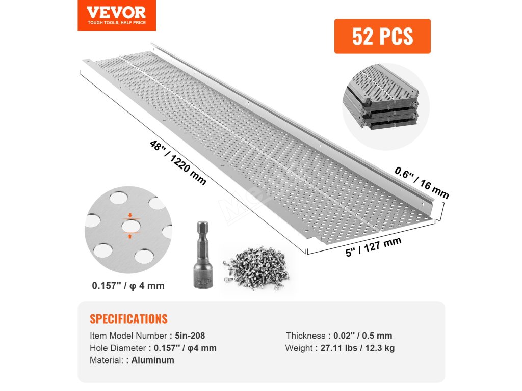 Naše ochrana okapů je vyrobena z vysoce kvalitního hliníku, který zaručuje odolnost a dlouhou životnost. Odolává drsným povětrnostním podmínkám a poskytuje spolehlivou ochranu po mnoho let.