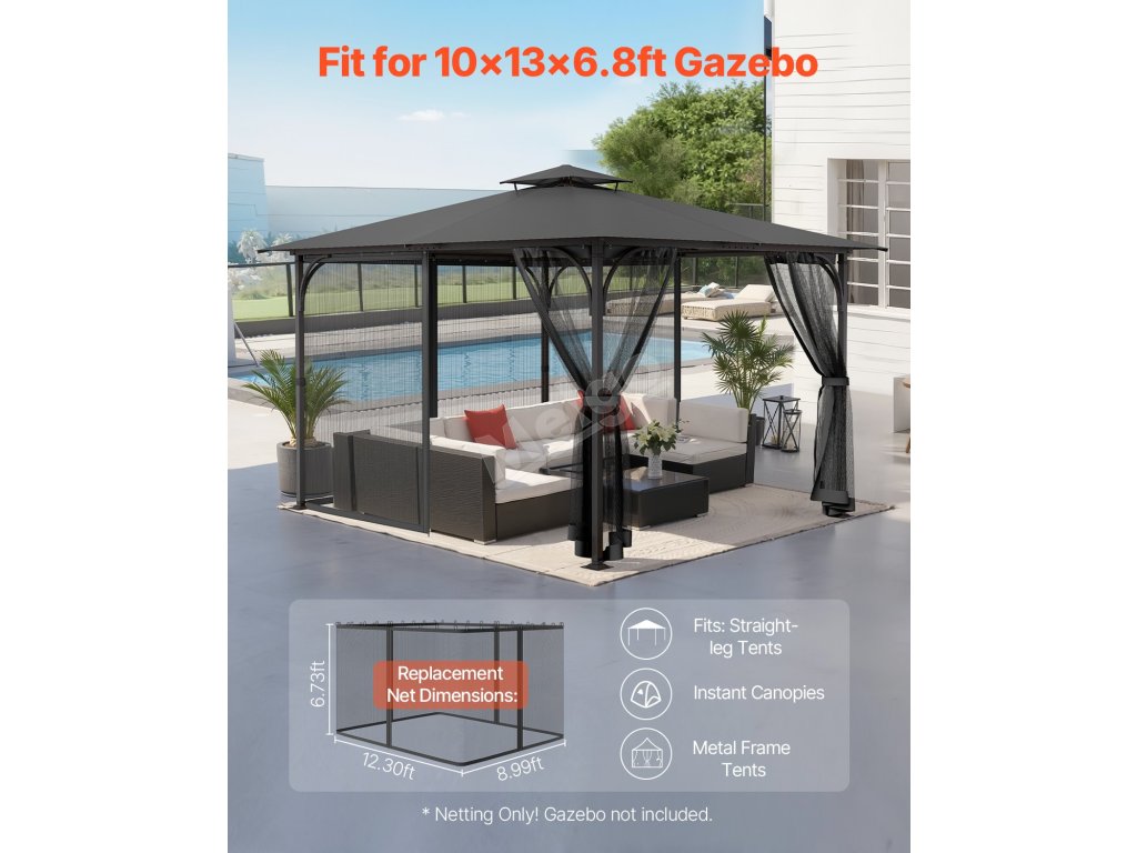 Síť na altán náhradní 4-panelová s dvojitým zipem 10×13×6.8 FT