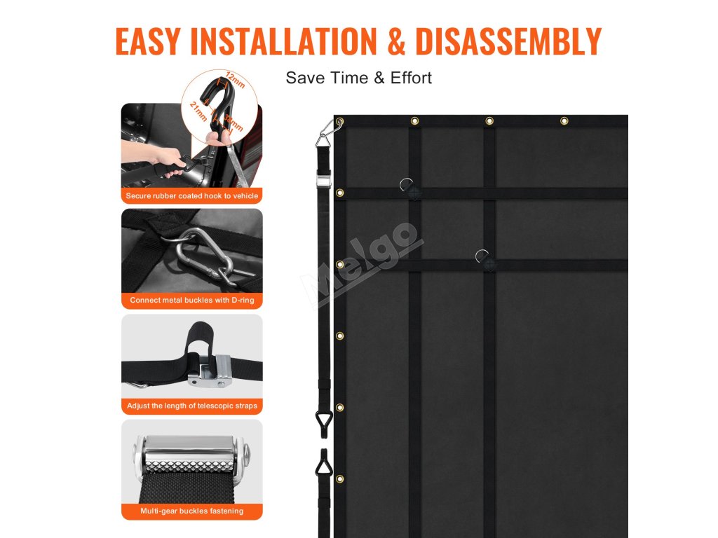 Pomocí háčků s pogumovaným povrchem v příslušenství připevněte síť na náklad k vozidlu. Žádné další nářadí není potřeba. Síť na náklad v ložné ploše nákladního automobilu je vhodná pro nákladní automobily, přívěsy, pickupy, SUV, džípy, a dokonce i pro lodě k zajištění předmětů.