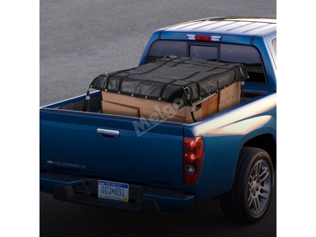 Síť na náklad 72 in × 57 in, 4 popruhy, karabiny, pryžové háčky