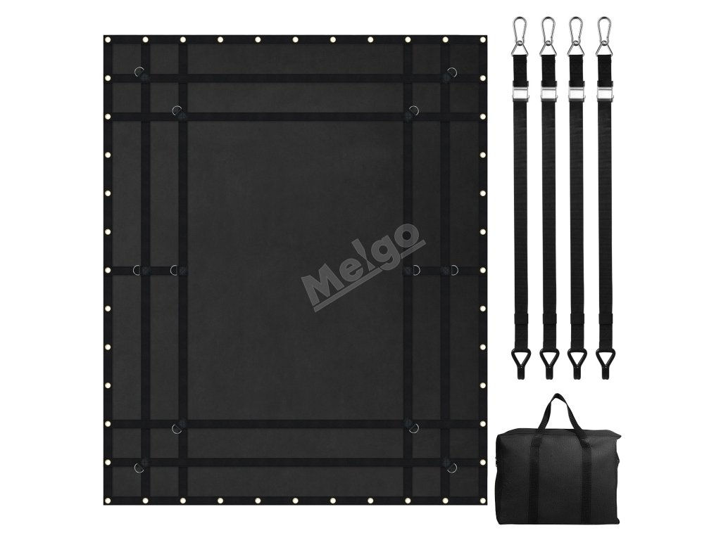 | Materiál | Tkanina potažená PVC + PP popruh + nerezové D-kroužky 12 ks + měděné průchodky 44 ks |
