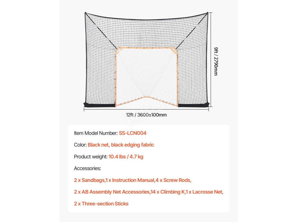 Toto lakrosové tréninkové vybavení je vyrobeno z kvalitních materiálů včetně pevné polyesterové sítě bez uzlů a polyesterových šňůr.