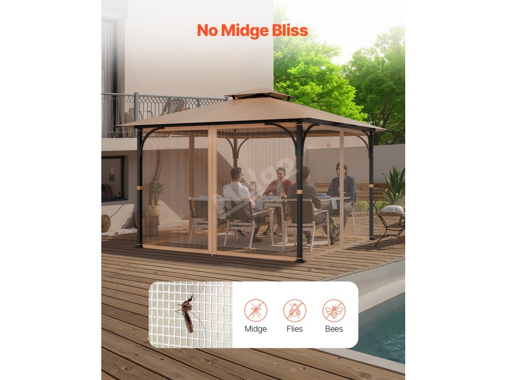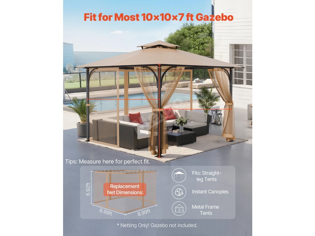 Síťka na zahradní altán 10×10×7 FT, 4 panely, dvojitý zip