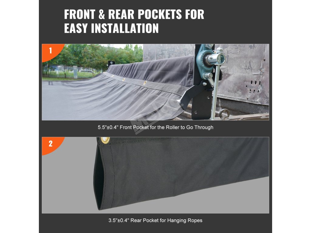 Co je lepší než plachta s kapsou? Plachta se dvěma! Přední kapsa naší síťované plachty na sklápěčku je připravena přivítat vaši sklápěčku a zadní kapsa jen tak visí a čeká na vaše lano.