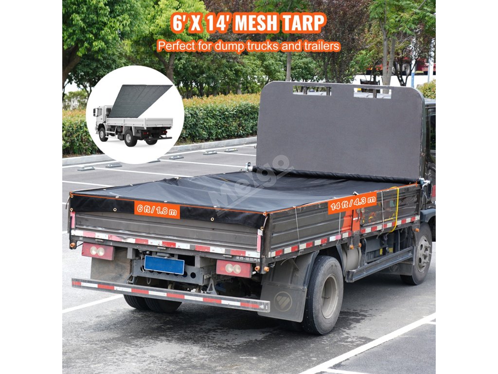 Síťový kryt na sklápěcí auto 6×14 ft pvc černý 18oz mosazná oka