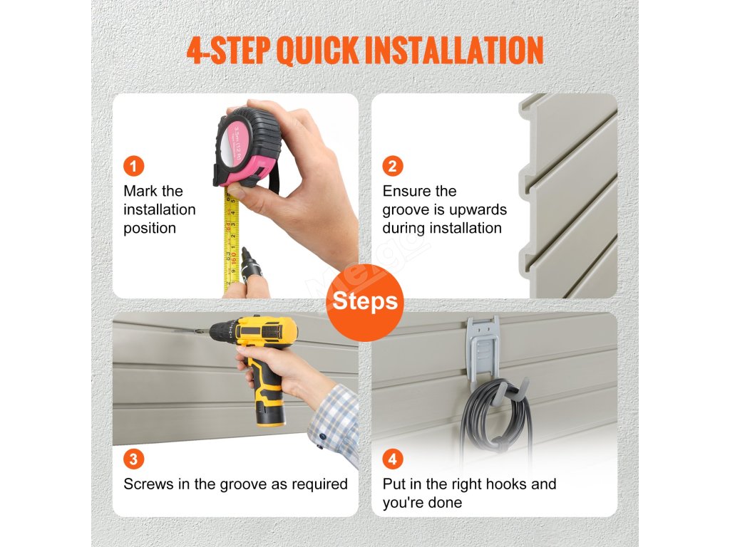 Připravte se na to, že díky všestrannému designu drážek našich lamelových desek můžete kombinovat a okouzlovat. Rozteč drážek 3 palce podporuje různé háčky, aby vaše stěny byly úhledné, čisté a bez otravných šroubů a hřebíků.