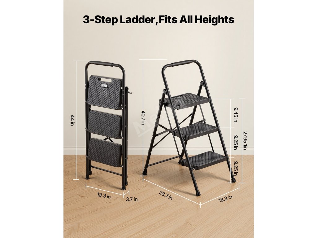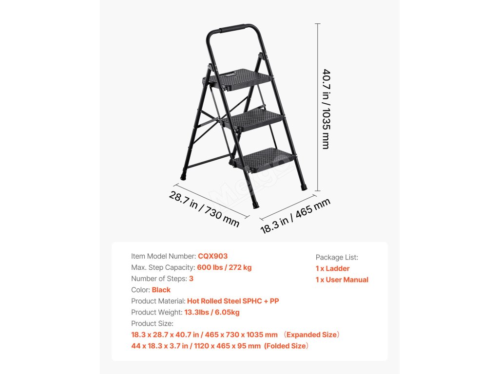 Skládací 3-stupňový ocelový žebřík s protiskluzovými nášlapy, 272 kg
