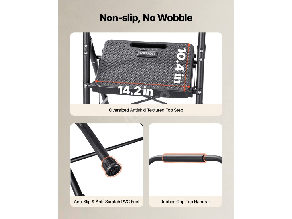 Velký horní stupínek s texturou a protiskluzové nožičky vybavené pohodlnou rukojetí vám pomohou pracovat bez uklouznutí a otřesů.