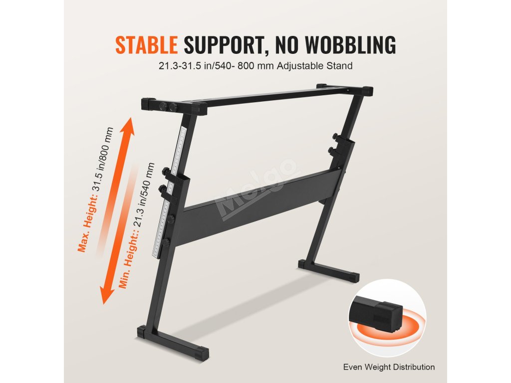 Stabilitu a pohodlí při hře vám zajistí náš nastavitelný klavírní stojan v rozmezí od 21,3 do 31,5 palce (540-800 mm). Nastavte si jej podle své výšky pro stabilní a pohodlné hraní.