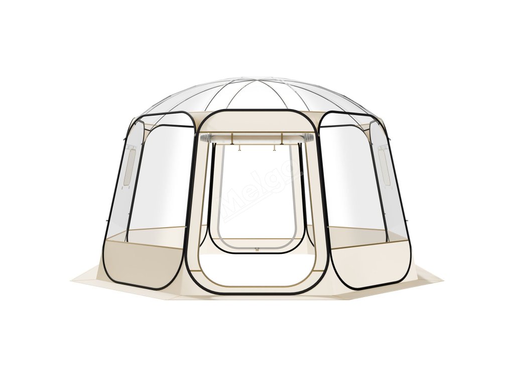 Skládací bublinkový stan 3.36×3.45 m průhledný vodotěsný 10–12 osob