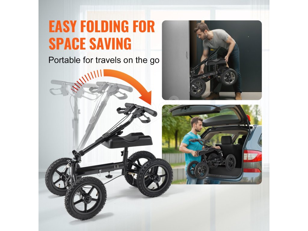 Skládací chodítko na koleno, 12" (30.5 cm) kola, dvojité brzdy
