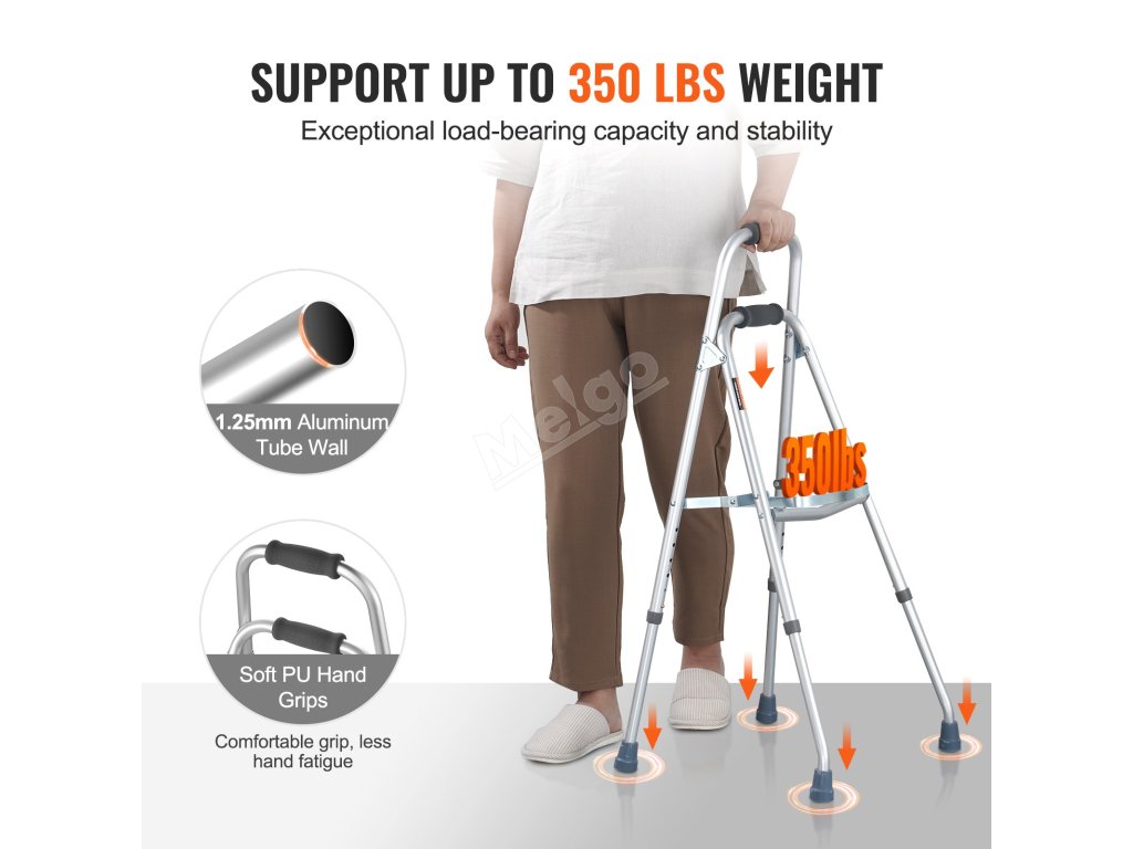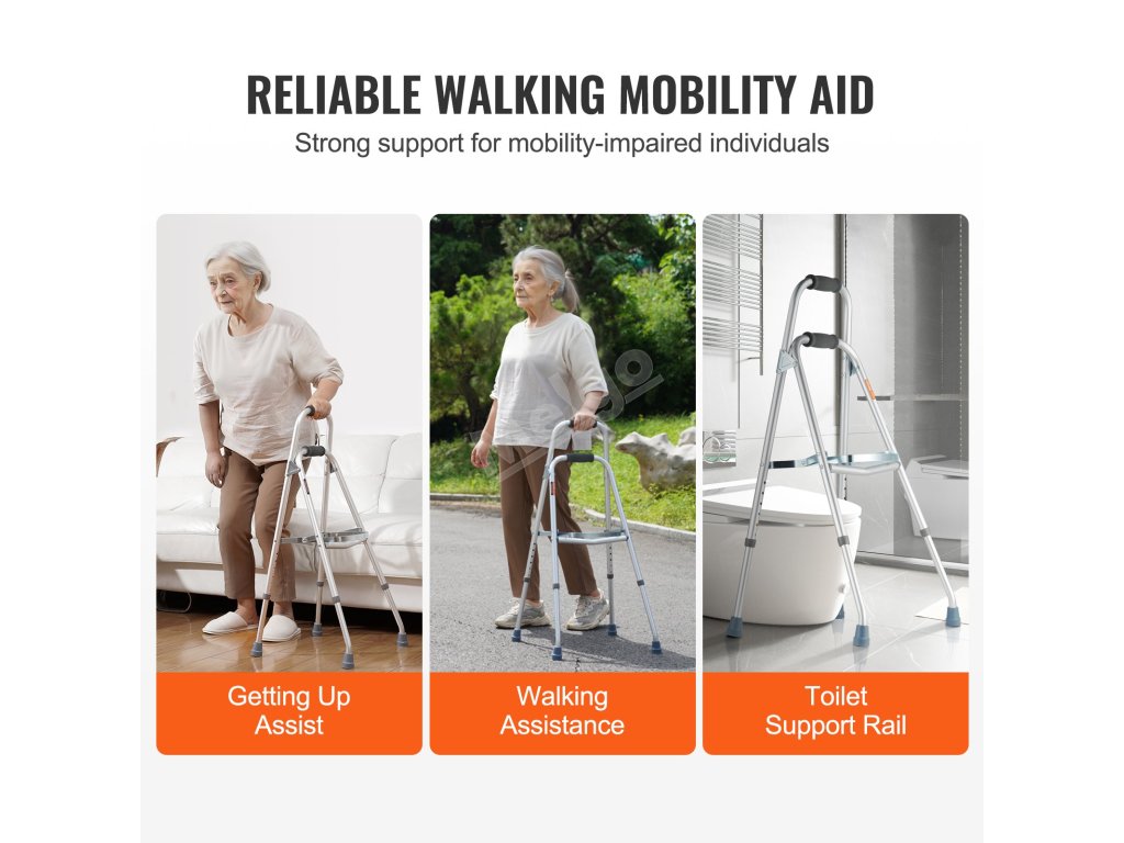Skládací půlkruhové chodítko VEVOR - váš dokonalý společník pro zvýšení mobility a nezávislosti. Díky snadnému skládání a nastavitelné výšce je navrženo pro snadné skladování a individuální použití. S nosností až 350 kg poskytuje spolehlivou stabilitu seniorům a osobám se zdravotním postižením.