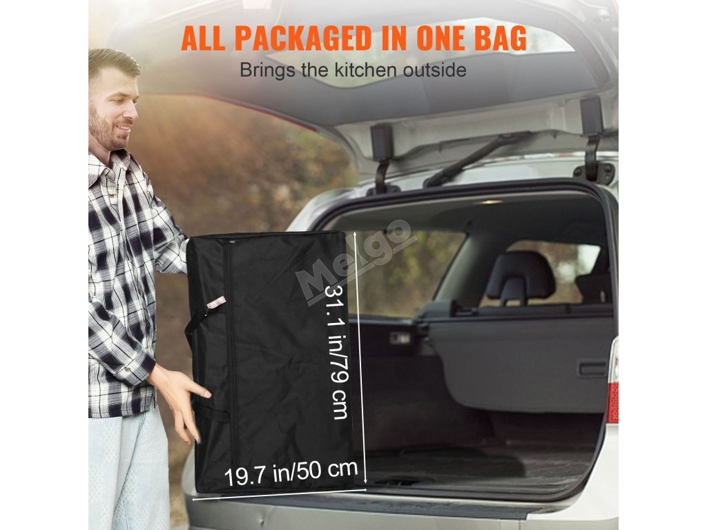 Kempingový kuchynský stôl VEVOR je vyrobený s ohľadom na prenosnosť. Je ľahký, vďaka čomu sa ľahko prenáša a prepravuje. Priložená prenosná taška poskytuje pohodlný spôsob skladovania a prepravy stola. Táto taška je vyrobená z odolných materiálov, ktoré chránia stôl počas prepravy. Preto je ideálny na vonkajšie aktivity, ako je kempovanie a pikniky. Z tohto dôvodu prenosnosť stola znamená, že si môžete zriadiť kuchyňu kdekoľvek sa vydáte. Preto je konštrukcia jedálenského stola taká prenosná. Je ideálny pre tých, ktorí radi cestujú a varia.