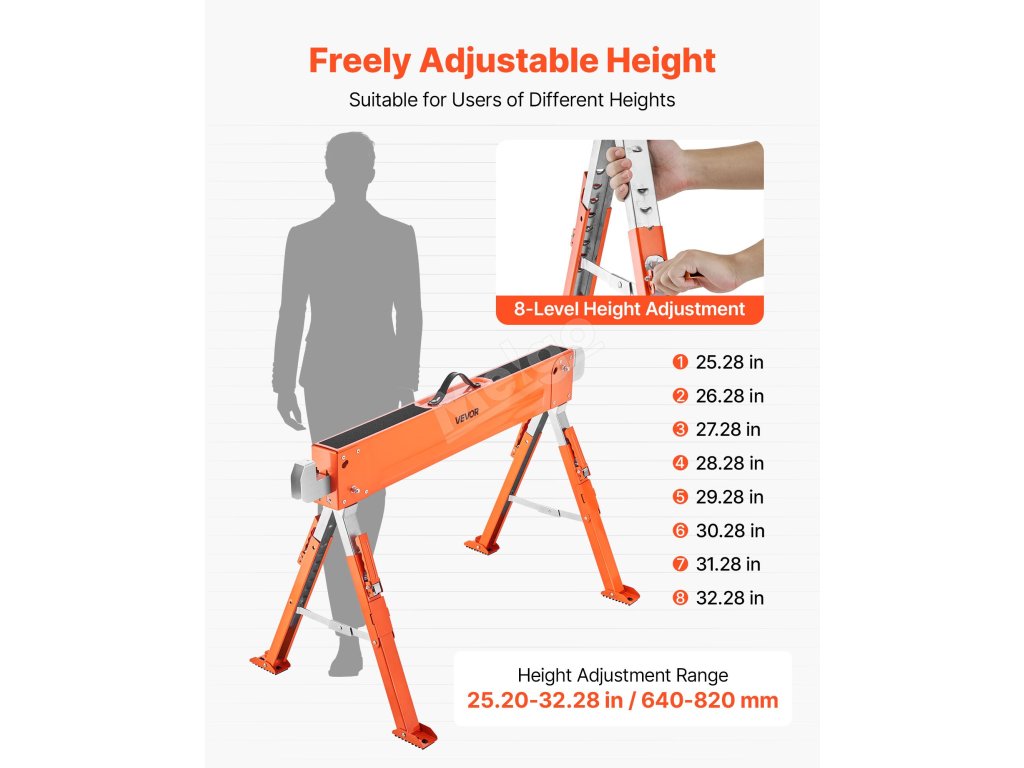 Skládací kozle 2 ks, nosnost 816,5 kg, nastavitelné protiskluzové nohy