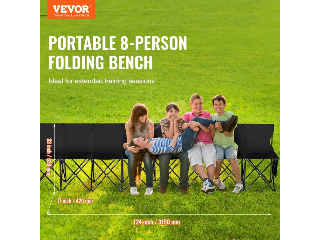 Skládací lavička pro 8 osob s opěradlem, boční kapsy, přenosná taška