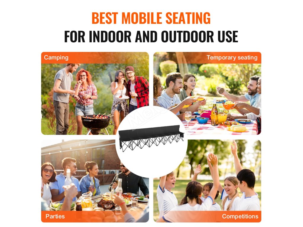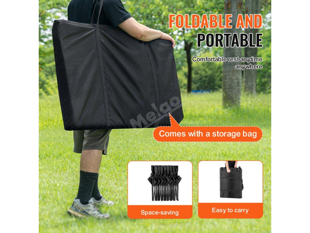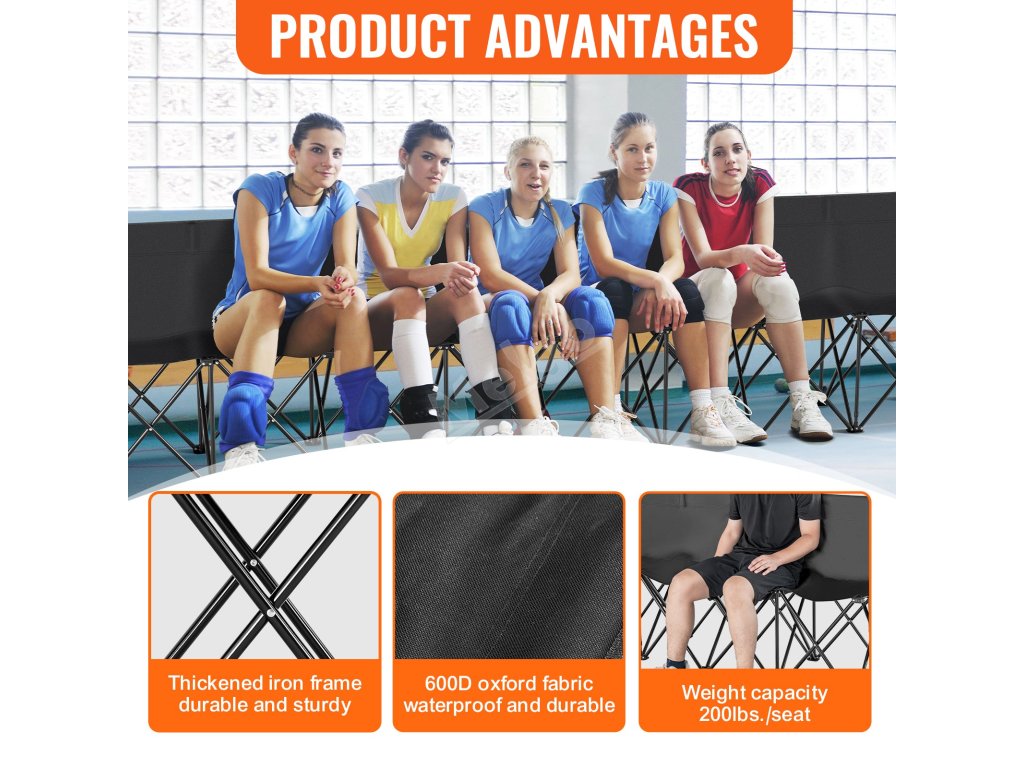 Tento produkt je vyroben z odolné tkaniny 600D Oxford se zesílenými podpěrnými tyčemi pro větší pevnost a stabilitu. Díky skládací konstrukci je ideální pro sportovní akce, večírky, venkovní kempování nebo jakoukoli příležitost, kdy potřebujete posezení u postranní čáry.